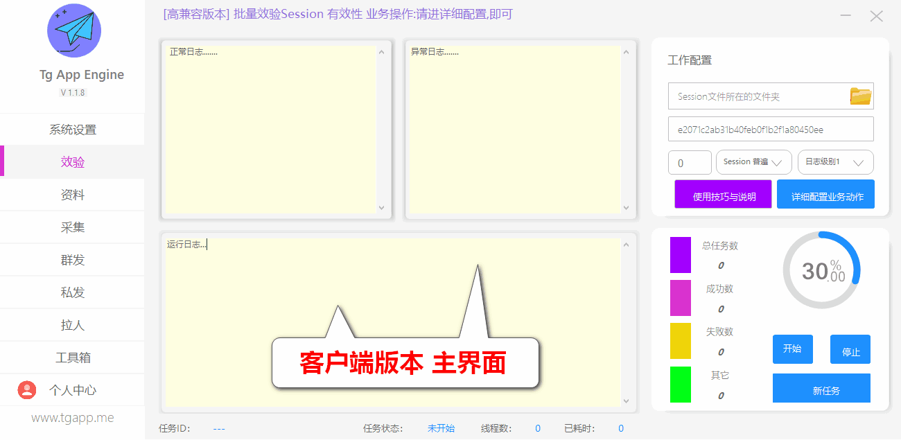 我们 TG 产品 主要分类 Pro 版本, 客户端版本, 供应商版本 其它 免费小功能工具 [Pro 版本] 主要面向用户使用的.全新架构更新,支持多达 20 多个功能模块,完善的 Excel 报表,Txt 文本日志. 客户端版本 主要面向用户使用的. 供应商版本 主要提供拥有接码平台的供应商使用.